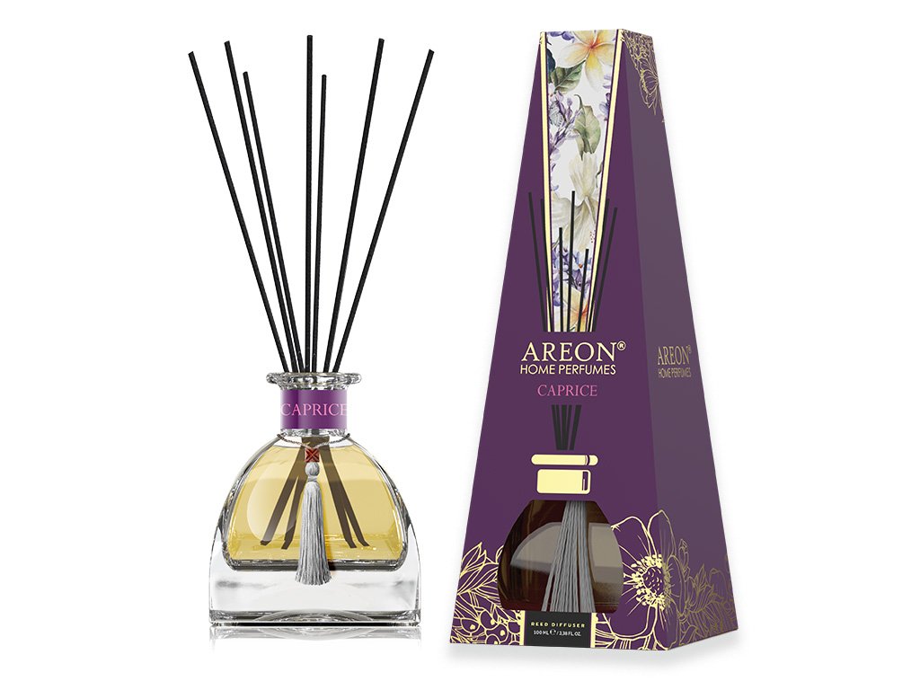 Difuzor AREON HOME PERFUME CAPRICE 100 ml s černými dřevěnými tyčinkami je dokonalou volbou pro ty, kteří touží po luxusním parfému. Tento difuzor přináší orientálně květinovo-ovocnou vůni s příjemnou kombinací tónů. Balen v elegantní lahvičce, tento difuzor se stane stylovým doplňkem interiéru a perfektním luxusním dárkem.