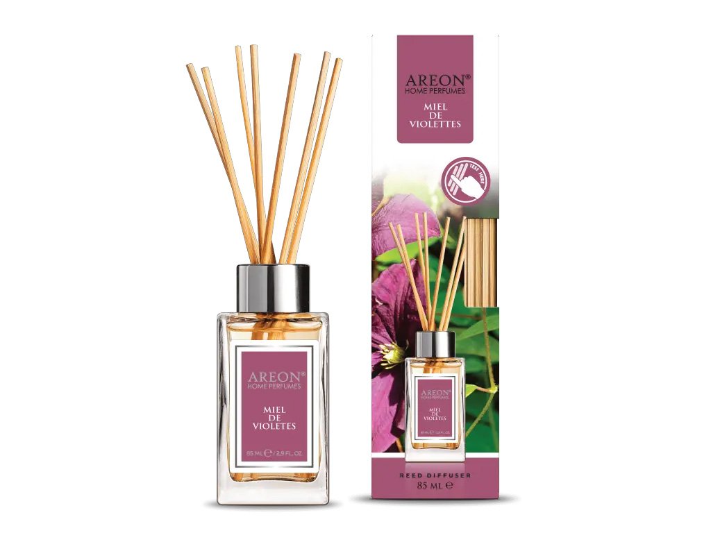 AREON Home Perfume Miel de Violettes 85 ml je ideální volbou pro menší prostory, kde chcete vytvořit jemnou, sladko-květinovou atmosféru s elegantním charakterem. Tyčinkový difuzér uvolňuje vůni rovnoměrně a dlouhodobě, takže váš domov provoní bez rušivých výkyvů intenzity.