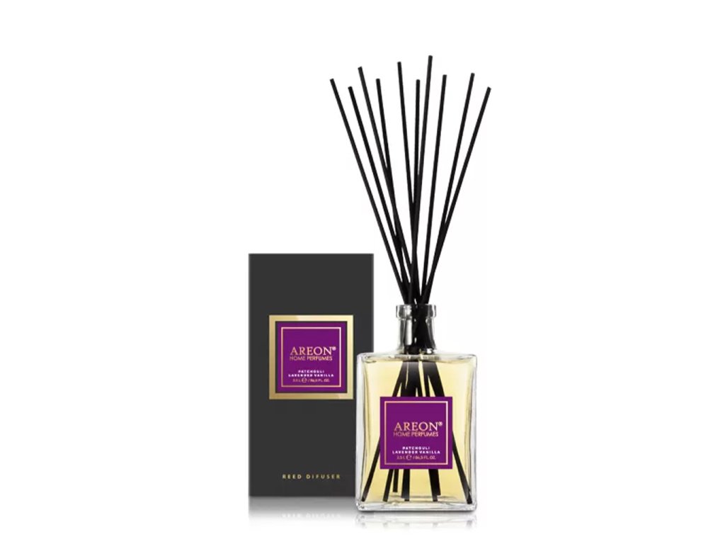 Tyčinkový aroma difuzér AREON PATCHOULI LAVENDER VANILLA pro dokonalé a příjemné provonění každého interiéru.