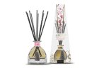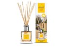 Difuzory se skleněnou lahvičkou naplněnou parfémem a dřevěnými tyčinkami, které postupně uvolňují vůni pro trvalé provonění místností.