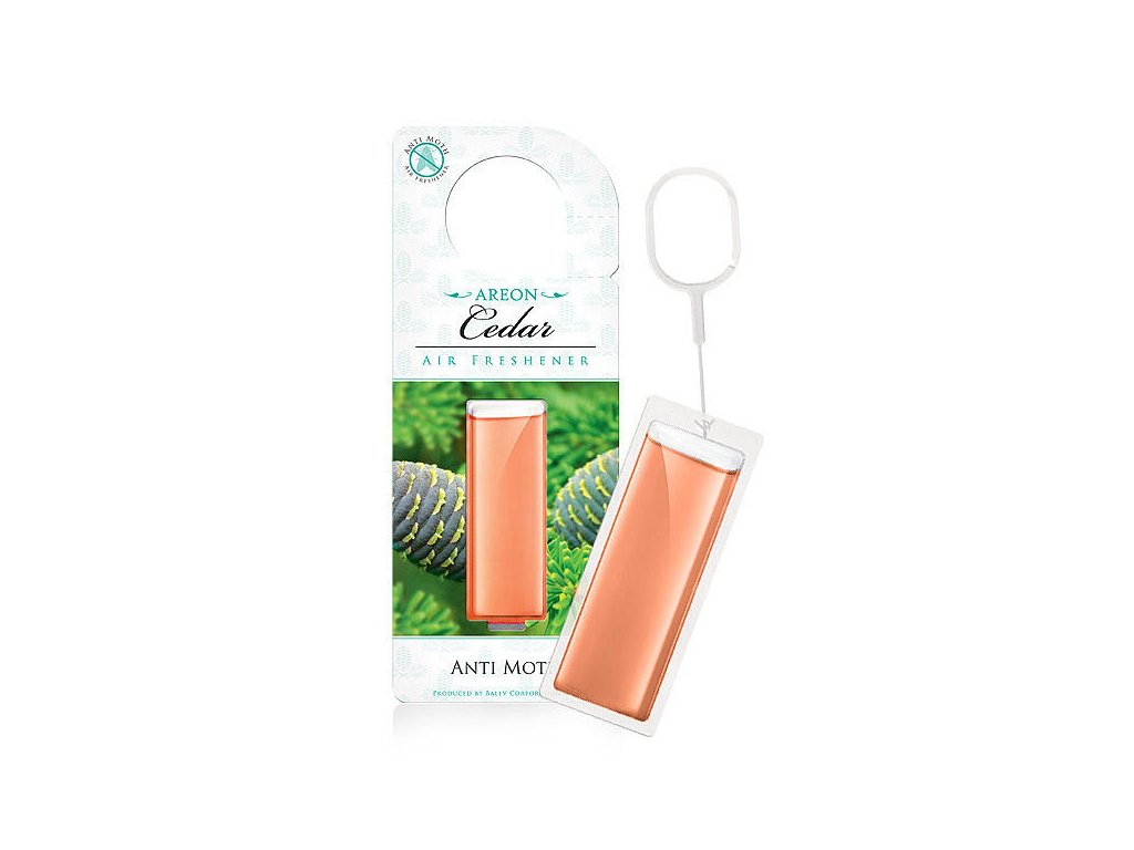 Osvěžovač vzduchu Areon Anti Moth Cedar zpříjemní váš prostor uklidňující vůní cedru se sladkými lesními tóny.