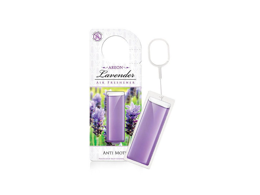 Osvěžovač vzduchu Areon Anti Moth Lavender zpříjemní váš prostor uklidňující vůní levandule, která evokuje letní den na rozkvetlých levandulových polích v Bulharsku.
