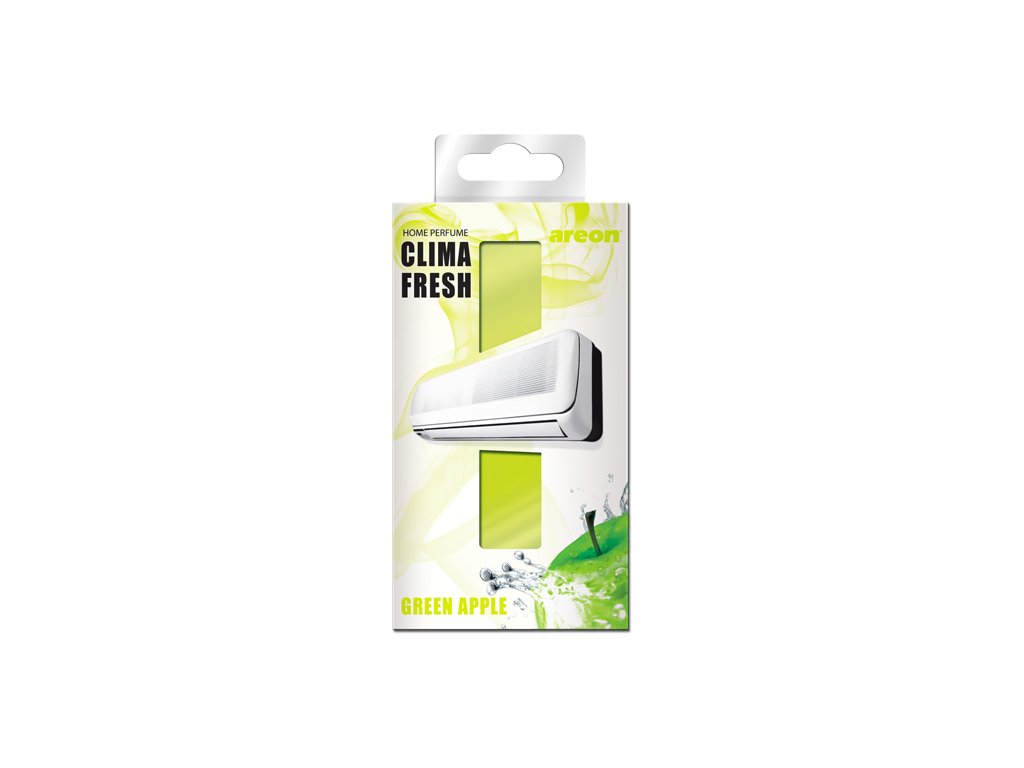 Osvěžovač Areon Clima Fresh Green Apple vás příjemně naladí díky sladké vůni zeleného jablka.