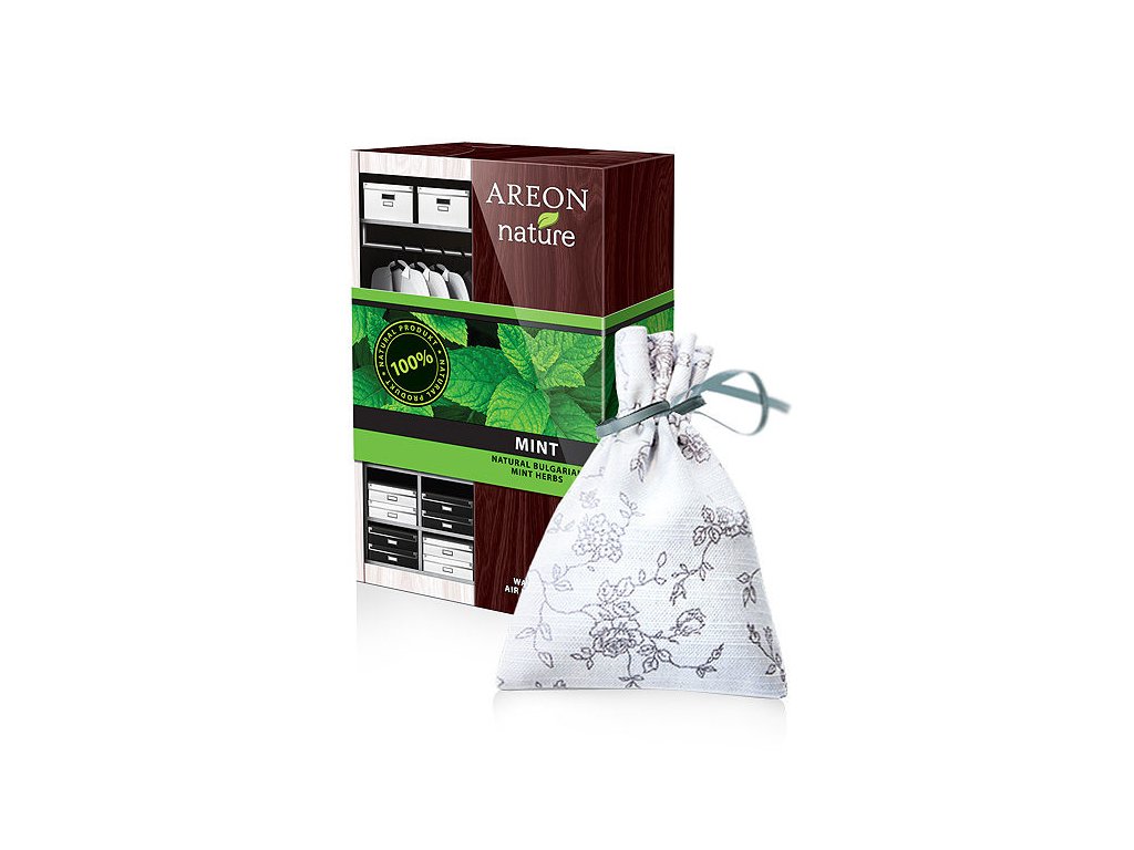 Areon Nature Premium Mint vás očaruje osvěžující vůní máty. Sušené lístky máty jsou obohaceny o rostlinné esence.