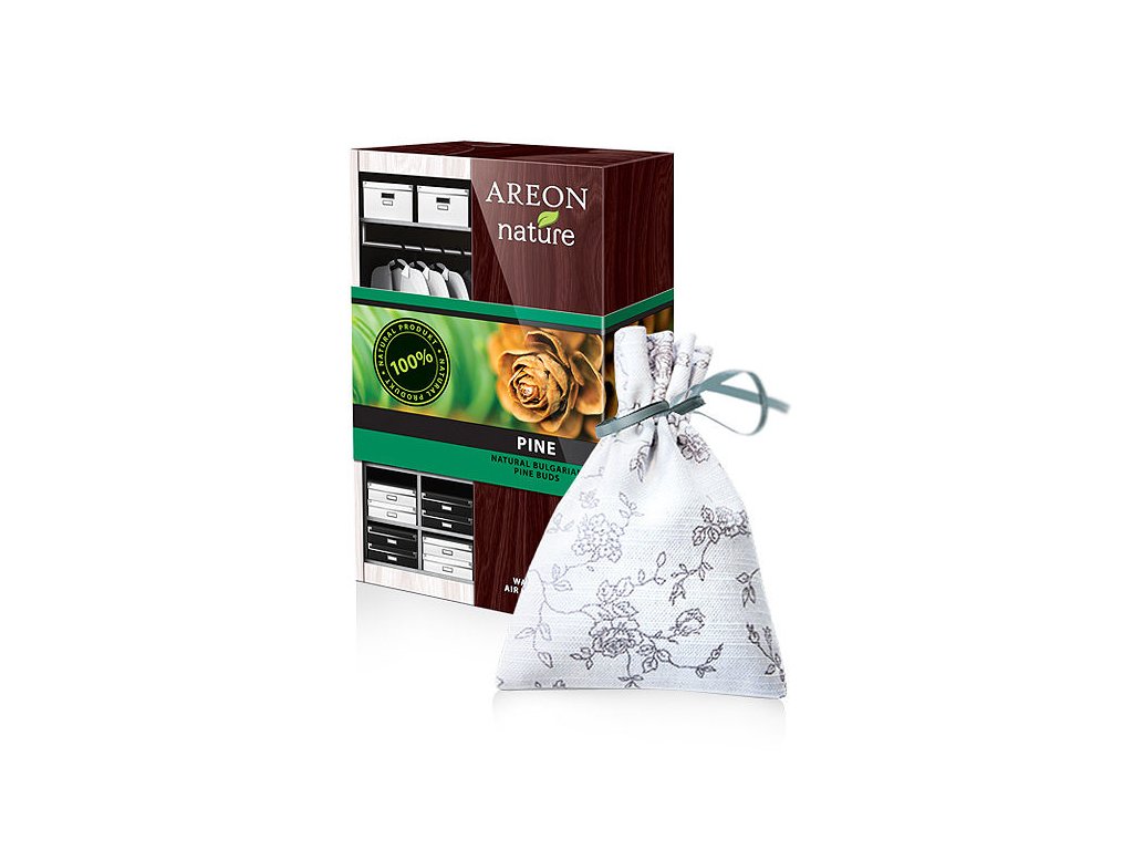 Areon Nature Premium Pine vás očaruje přírodní vůní lesní borovice. Sušené jehličky borovice jsou obohaceny o rostlinné esence.