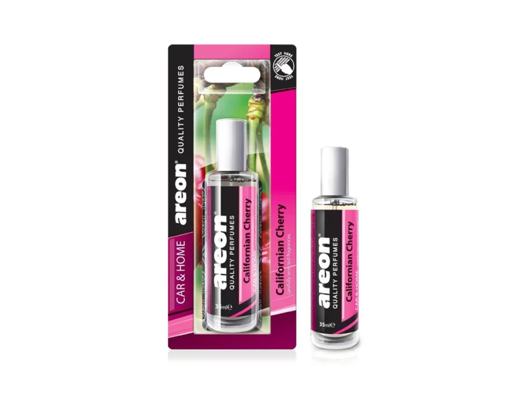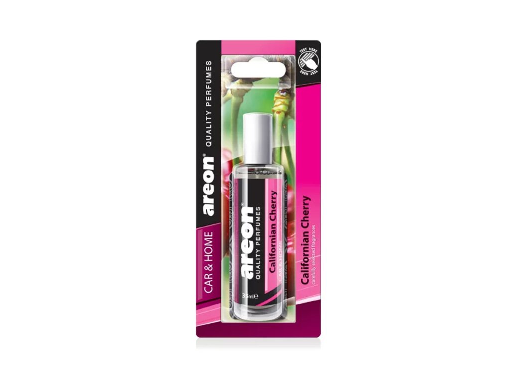 Elegantní vůně v podobě parfému pro provonění a zpříjemnění vašich okamžiku v autě i doma. Jemné aroma i originální design parfémované karty zútulní menší interiéry – vaše auto, koupelnu, WC, ložnici či kancelář. Výrobky Areon patří mezi nejkvalitnější osvěžovače vzduchu a spokojeni s nimi budou i ti nejnáročnější klienti. Složení parfému: AREON PERFUME Californian Cherry vás okouzlí výraznou vůní třešní. Balení: Parfém osvěžovače je ve skleněné lahvičce o objemu 35 ml. Parfémovaná karta osvěžovače z papíru je umístěna i s lahvičkou v plastovém a papírovém obalu. Návod k použití: Vyjměte lahvičku z obalu a pro osvěžení nastříkejte parfém 2-3x do prostoru (Nestříkejte parfém na kůži, plast, natřené nebo lakované povrchy – parfém by je mohl poškodit) nebo na přiloženou papírovou visačku, ze které se vůně postupně uvolňuje.Doplňkové parametry
