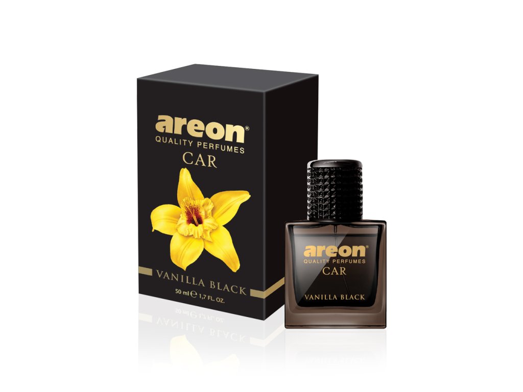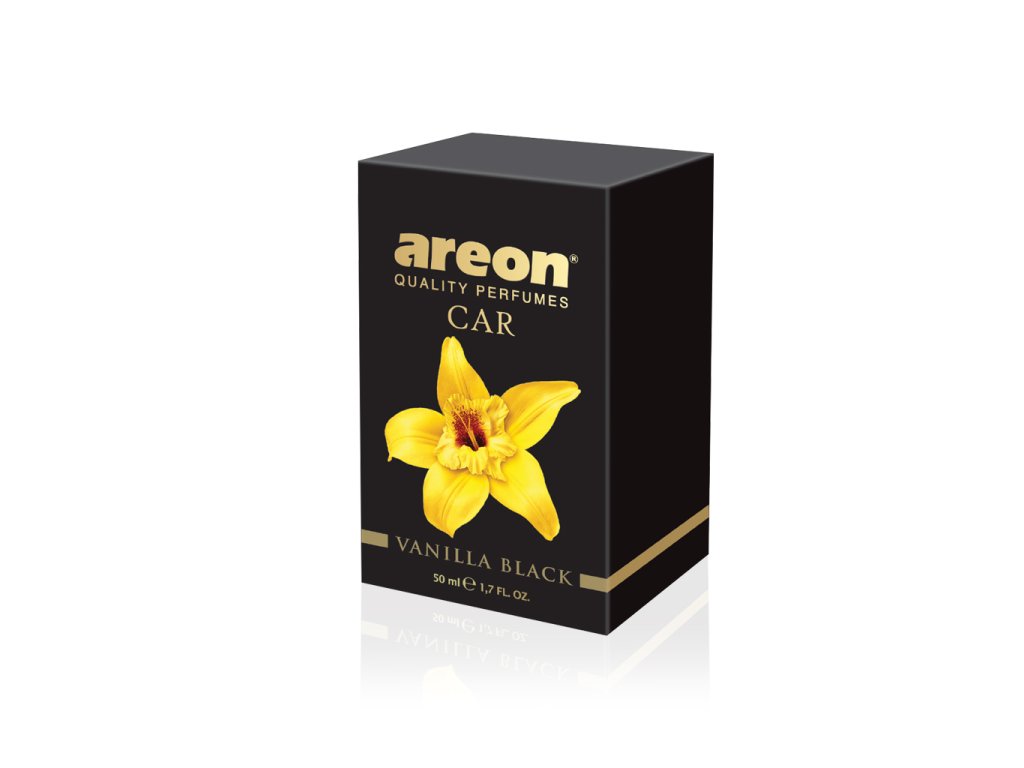 Design a balení: Areon Vanilla Black je uložen ve skleněném flakonu o objemu 50 ml s rozprašovačem, který umožňuje snadnou a precizní aplikaci. Elegantní černé balení doplněné stylovou visačkou zvyšuje luxusní dojem z produktu a činí jej ideálním i jako dárek.