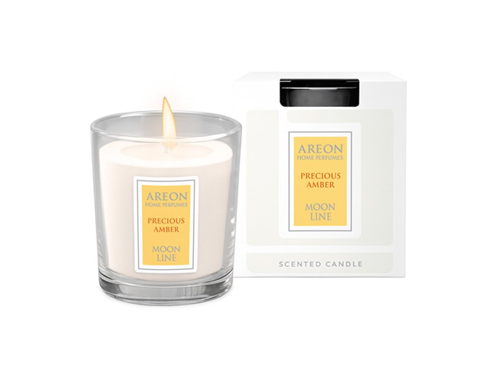 Nechte svůj domov zahalit do sametového tepla a noblesní elegance s AREON Scented Candle Moon Line Precious Amber. Tato luxusní svíčka je poctou sofistikovanému vkusu – propojuje hřejivou ambru s jemnými tóny vanilky a santalového dřeva, které společně vytvářejí harmonickou vůni klidu, jistoty a domova.