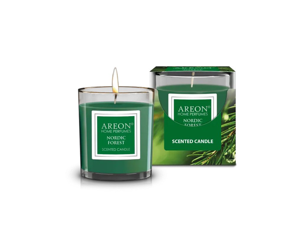 Luxusní vonná svíčka ve skle Nordic Forest z řady AREON, která provoní Váš interiér a navodí dokonalou atmosféru vánoc. Dominantními tóny, které celou kompozici otevírají, jsou borovice a les.