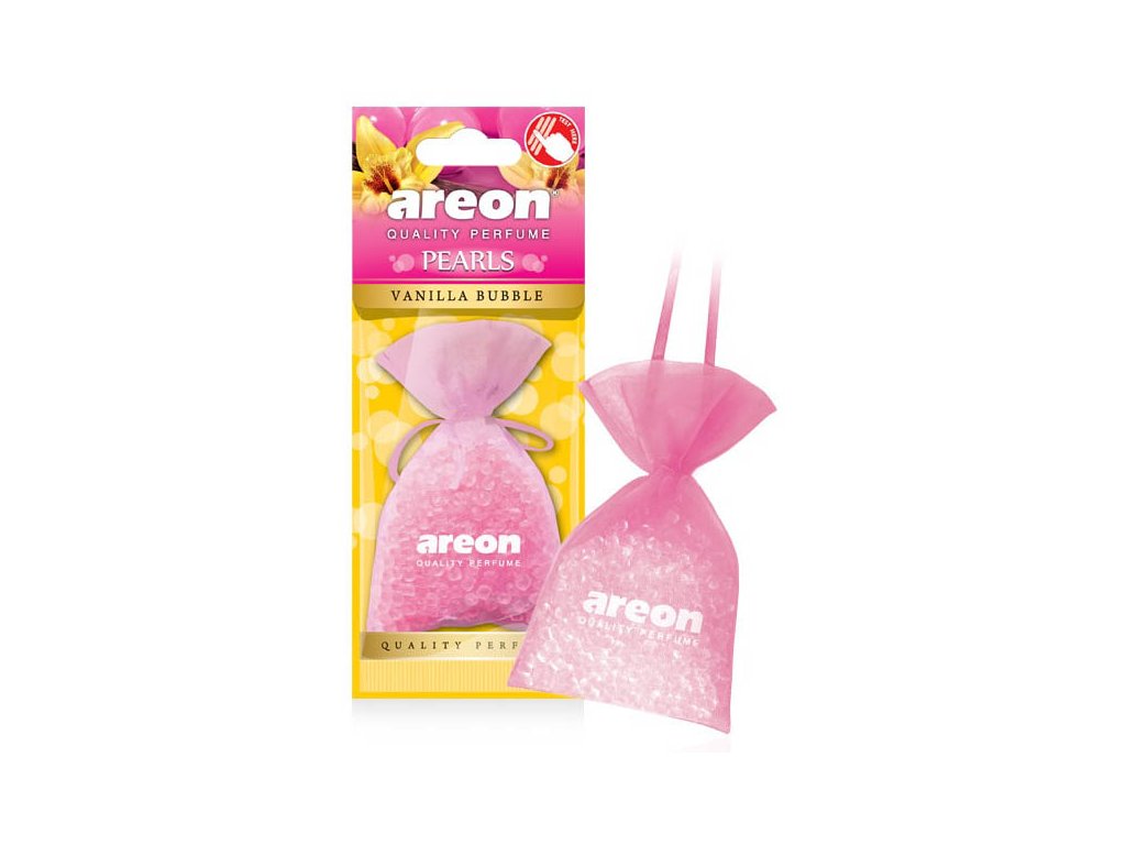 Osvěžovač vzduchu AREON PEARLS – Vanilla Bubble si vás získá sladkou a intenzivní vůní vanilky a tónů žvýkačky.