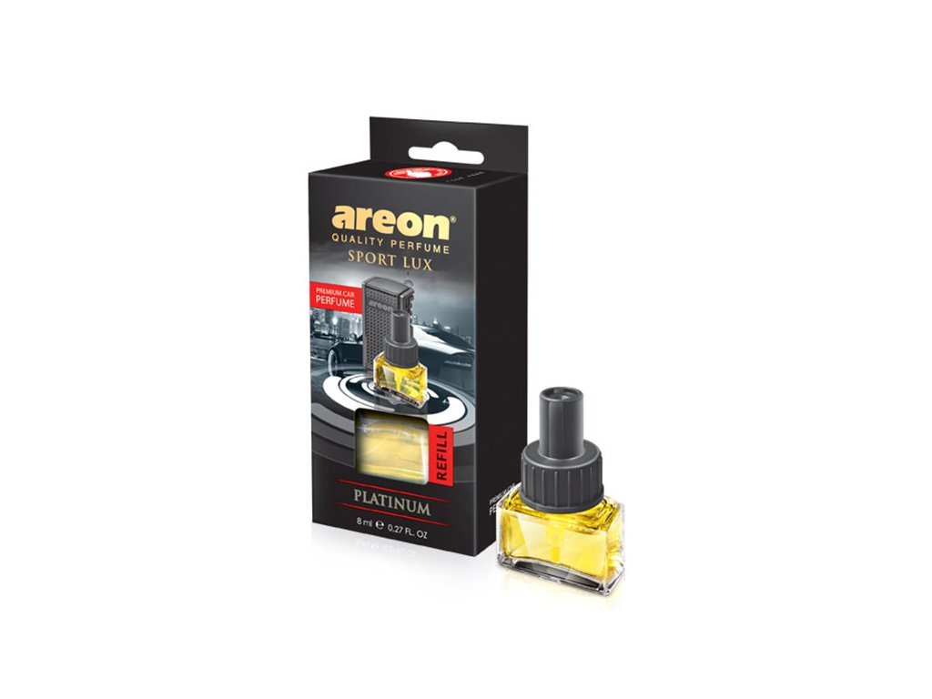Parfém osvěžovače je ve skleněné lahvičce o objemu 8 ml. Výrobek slouží jako náplň k osvěžovači vzduchu AREON CAR Black edition Platinum a neobsahuje plastový držák a difuzér. Náplň je zabalena v luxusní černé dárkové krabičce z papíru.