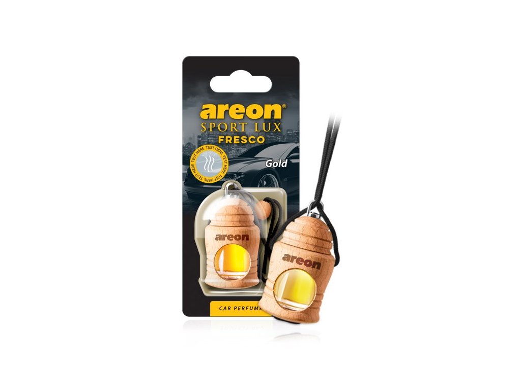 Osvěžovač AREON FRESCO LUX Gold okouzlí vaše smysly hedvábnou vůní bílého čaje, smíchaného s tóny citrusů a měkkého pižma.