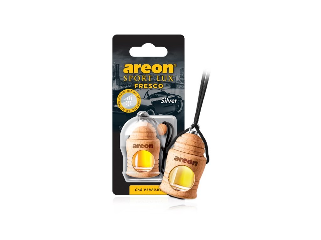 Osvěžovač AREON FRESCO LUX Silver okouzlí vaše smysly hedvábnou vůní měkkého pižma v kombinaci s jemnými tóny citrusů.