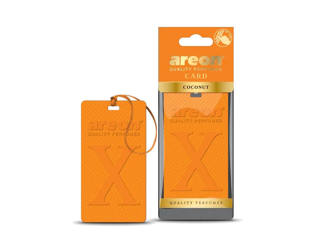 Vonná karta AREON X-CARD Coconut přináší do interiéru vozu tropickou atmosféru plnou pohody. Jemné zelené tóny v úvodu navazují na sladké srdce kokosu a jahody, které působí uvolněně a příjemně.